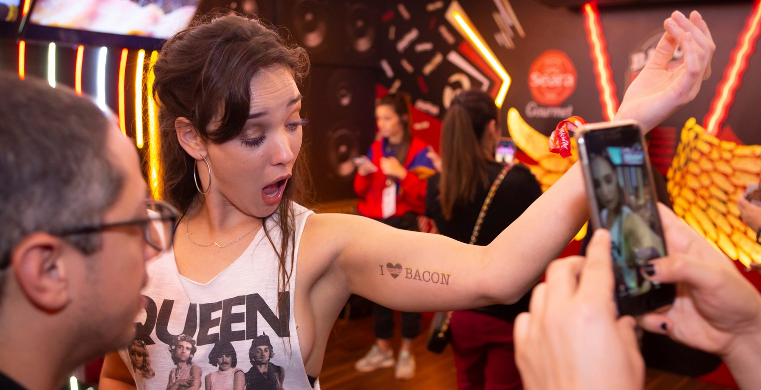 Os apaixonados por bacon foram convocados a vivenciar uma experiência recheada de música, diversão e muito sabor. No Rock District houve ativação no espaço conceito da marca, com aplicação de tatuagem digital temática (bacon) e comercialização de produtos, também com foco em bacon (combos e sobremesa), além de bebidas. O espaço, alegre e descontraído, em sintonia com o movimento #BaconLovers, recebeu os embaixadores da campanha, convidados e influenciadores.